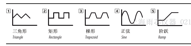 本系列所有型號都具有一可形成如下典型函數的真實函數發生器,并能將它們應用于輸出電壓或輸出 電流上。發生器可通過前板的觸摸屏設置,或經某一數字接口遠程配置。